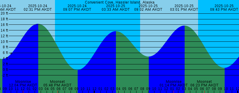2025-10-24 02:58 AM AKDT 14.44 feet High Tide 2025-10-24 07:37 AM AKDT Sunrise 2025-10-24 08:31 AM AKDT 3.84 feet Low Tide 2025-10-24 12:04 PM AKDT Moonrise 2025-10-24 02:31 PM AKDT 16.33 feet High Tide 2025-10-24 05:23 PM AKDT Sunset 2025-10-24 05:48 PM AKDT Moonset 2025-10-24 09:07 PM AKDT -0.09 feet Low Tide 2025-10-25 03:33 AM AKDT 13.73 feet High Tide 2025-10-25 07:39 AM AKDT Sunrise 2025-10-25 09:02 AM AKDT 4.69 feet Low Tide 2025-10-25 01:14 PM AKDT Moonrise 2025-10-25 03:01 PM AKDT 15.69 feet High Tide 2025-10-25 05:20 PM AKDT Sunset 2025-10-25 06:23 PM AKDT Moonset 2025-10-25 09:43 PM AKDT 0.68 feet Low Tide 2025-10-26 04:13 AM AKDT 12.88 feet High Tide 2025-10-26 07:41 AM AKDT Sunrise 2025-10-26 09:35 AM AKDT 5.55 feet Low Tide 2025-10-26 02:08 PM AKDT Moonrise 2025-10-26 03:35 PM AKDT 14.89 feet High Tide 2025-10-26 05:18 PM AKDT Sunset 2025-10-26 07:17 PM AKDT Moonset 2025-10-26 10:24 PM AKDT 1.56 feet Low Tide 2025-10-27 05:01 AM AKDT 12.03 feet High Tide 2025-10-27 07:43 AM AKDT Sunrise 2025-10-27 10:16 AM AKDT 6.38 feet Low Tide 2025-10-27 02:45 PM AKDT Moonrise 2025-10-27 04:17 PM AKDT 13.98 feet High Tide 2025-10-27 05:16 PM AKDT Sunset 2025-10-27 08:28 PM AKDT Moonset |