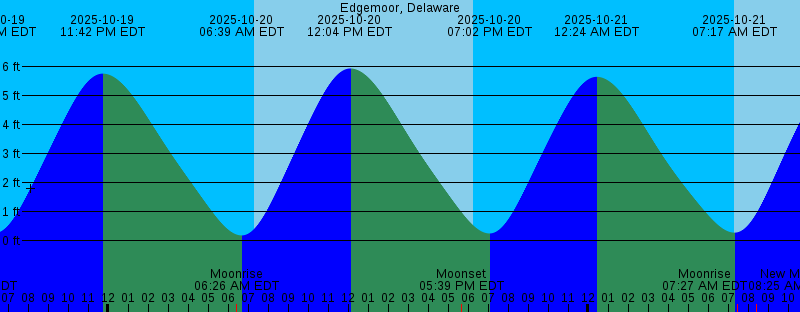 2025-10-19 05:19 PM EDT Moonset 2025-10-19 06:16 PM EDT Sunset 2025-10-19 06:16 PM EDT 0.25 feet Low Tide 2025-10-19 11:42 PM EDT 5.76 feet High Tide 2025-10-20 06:26 AM EDT Moonrise 2025-10-20 06:39 AM EDT 0.18 feet Low Tide 2025-10-20 07:17 AM EDT Sunrise 2025-10-20 12:04 PM EDT 5.94 feet High Tide 2025-10-20 05:39 PM EDT Moonset 2025-10-20 06:14 PM EDT Sunset 2025-10-20 07:02 PM EDT 0.25 feet Low Tide 2025-10-21 12:24 AM EDT 5.65 feet High Tide 2025-10-21 07:17 AM EDT 0.28 feet Low Tide 2025-10-21 07:18 AM EDT Sunrise 2025-10-21 07:27 AM EDT Moonrise 2025-10-21 08:25 AM EDT New Moon 2025-10-21 12:44 PM EDT 5.96 feet High Tide 2025-10-21 06:02 PM EDT Moonset 2025-10-21 06:13 PM EDT Sunset 2025-10-21 07:45 PM EDT 0.30 feet Low Tide 2025-10-22 01:03 AM EDT 5.49 feet High Tide 2025-10-22 07:19 AM EDT Sunrise 2025-10-22 07:53 AM EDT 0.41 feet Low Tide 2025-10-22 08:29 AM EDT Moonrise 2025-10-22 01:20 PM EDT 5.93 feet High Tide 2025-10-22 06:12 PM EDT Sunset 2025-10-22 06:28 PM EDT Moonset 2025-10-22 08:27 PM EDT 0.40 feet Low Tide 2025-10-23 01:42 AM EDT 5.30 feet High Tide 2025-10-23 07:21 AM EDT Sunrise 2025-10-23 08:26 AM EDT 0.54 feet Low Tide 2025-10-23 09:32 AM EDT Moonrise 2025-10-23 01:54 PM EDT 5.87 feet High Tide |