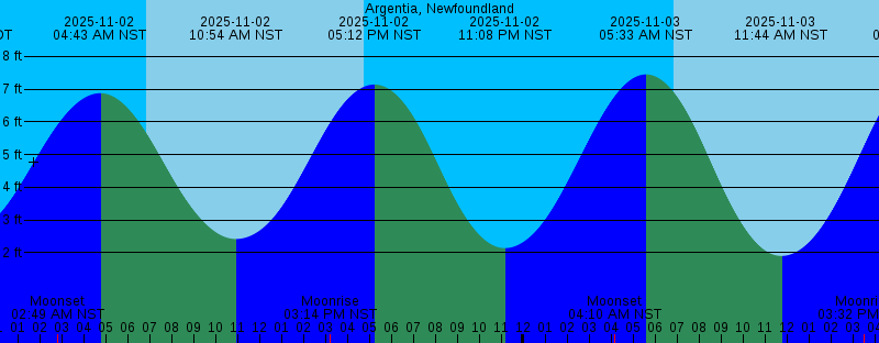 2025-11-01 03:56 PM NDT Moonrise 2025-11-01 05:15 PM NDT 6.82 feet High Tide 2025-11-01 05:48 PM NDT Sunset 2025-11-01 11:36 PM NDT 2.63 feet Low Tide 2025-11-02 02:49 AM NST Moonset 2025-11-02 04:43 AM NST 6.88 feet High Tide 2025-11-02 06:51 AM NST Sunrise 2025-11-02 10:54 AM NST 2.42 feet Low Tide 2025-11-02 03:14 PM NST Moonrise 2025-11-02 04:47 PM NST Sunset 2025-11-02 05:12 PM NST 7.14 feet High Tide 2025-11-02 11:08 PM NST 2.14 feet Low Tide 2025-11-03 04:10 AM NST Moonset 2025-11-03 05:33 AM NST 7.45 feet High Tide 2025-11-03 06:52 AM NST Sunrise 2025-11-03 11:44 AM NST 1.90 feet Low Tide 2025-11-03 03:32 PM NST Moonrise 2025-11-03 04:45 PM NST Sunset 2025-11-03 06:00 PM NST 7.46 feet High Tide 2025-11-03 11:42 PM NST 1.70 feet Low Tide 2025-11-04 05:36 AM NST Moonset 2025-11-04 06:20 AM NST 8.00 feet High Tide 2025-11-04 06:54 AM NST Sunrise 2025-11-04 12:28 PM NST 1.45 feet Low Tide 2025-11-04 03:53 PM NST Moonrise 2025-11-04 04:44 PM NST Sunset 2025-11-04 06:43 PM NST 7.67 feet High Tide 2025-11-05 12:19 AM NST 1.38 feet Low Tide 2025-11-05 06:55 AM NST Sunrise 2025-11-05 07:05 AM NST 8.43 feet High Tide 2025-11-05 07:05 AM NST Moonset 2025-11-05 09:50 AM NST Full Moon |