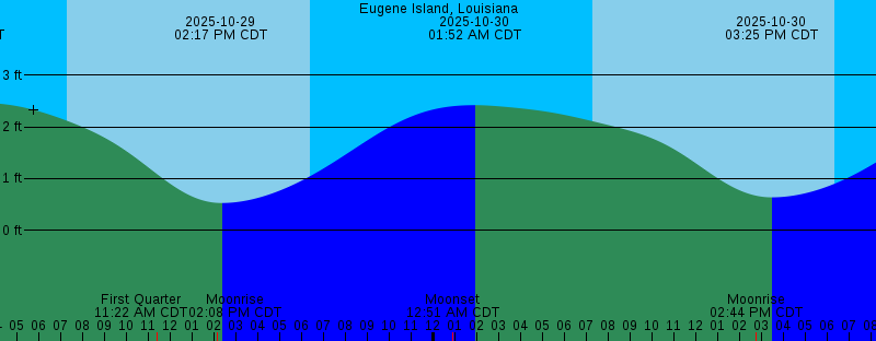 2025-10-28 11:51 PM CDT Moonset 2025-10-29 02:17 AM CDT 2.47 feet High Tide 2025-10-29 07:16 AM CDT Sunrise 2025-10-29 11:22 AM CDT First Quarter 2025-10-29 02:08 PM CDT Moonrise 2025-10-29 02:17 PM CDT 0.53 feet Low Tide 2025-10-29 06:21 PM CDT Sunset 2025-10-30 12:51 AM CDT Moonset 2025-10-30 01:52 AM CDT 2.42 feet High Tide 2025-10-30 07:17 AM CDT Sunrise 2025-10-30 02:44 PM CDT Moonrise 2025-10-30 03:25 PM CDT 0.64 feet Low Tide 2025-10-30 06:20 PM CDT Sunset 2025-10-31 01:52 AM CDT 2.32 feet High Tide 2025-10-31 01:53 AM CDT Moonset 2025-10-31 07:18 AM CDT Sunrise 2025-10-31 03:17 PM CDT Moonrise 2025-10-31 04:31 PM CDT 0.81 feet Low Tide 2025-10-31 06:19 PM CDT Sunset 2025-11-01 01:54 AM CDT 2.21 feet High Tide 2025-11-01 02:55 AM CDT Moonset 2025-11-01 06:17 AM CDT 1.64 feet Low Tide 2025-11-01 07:18 AM CDT Sunrise 2025-11-01 12:51 PM CDT 1.98 feet High Tide 2025-11-01 03:49 PM CDT Moonrise 2025-11-01 05:36 PM CDT 1.04 feet Low Tide 2025-11-01 06:18 PM CDT Sunset |