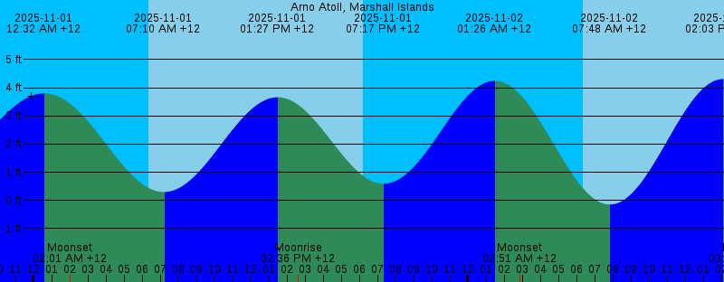 | 2025-10-31 06:13 PM +12 Sunset 2025-10-31 06:15 PM +12 1.12 feet Low Tide 2025-11-01 12:32 AM +12 3.80 feet High Tide 2025-11-01 02:01 AM +12 Moonset 2025-11-01 06:20 AM +12 Sunrise 2025-11-01 07:10 AM +12 0.30 feet Low Tide 2025-11-01 01:27 PM +12 3.66 feet High Tide 2025-11-01 02:36 PM +12 Moonrise 2025-11-01 06:12 PM +12 Sunset 2025-11-01 07:17 PM +12 0.59 feet Low Tide 2025-11-02 01:26 AM +12 4.24 feet High Tide 2025-11-02 02:51 AM +12 Moonset 2025-11-02 06:20 AM +12 Sunrise 2025-11-02 07:48 AM +12 -0.14 feet Low Tide 2025-11-02 02:03 PM +12 4.31 feet High Tide 2025-11-02 03:20 PM +12 Moonrise 2025-11-02 06:12 PM +12 Sunset 2025-11-02 08:04 PM +12 0.03 feet Low Tide 2025-11-03 02:10 AM +12 4.62 feet High Tide 2025-11-03 03:42 AM +12 Moonset 2025-11-03 06:20 AM +12 Sunrise 2025-11-03 08:23 AM +12 -0.54 feet Low Tide 2025-11-03 02:38 PM +12 4.91 feet High Tide 2025-11-03 04:05 PM +12 Moonrise 2025-11-03 06:12 PM +12 Sunset 2025-11-03 08:46 PM +12 -0.48 feet Low Tide 2025-11-04 02:50 AM +12 4.87 feet High Tide 2025-11-04 04:36 AM +12 Moonset 2025-11-04 06:21 AM +12 Sunrise 2025-11-04 08:57 AM +12 -0.84 feet Low Tide 2025-11-04 03:13 PM +12 5.41 feet High Tide 2025-11-04 04:53 PM +12 Moonrise | Other Nearby Tide Stations |